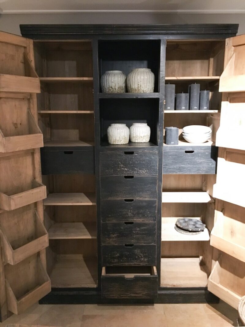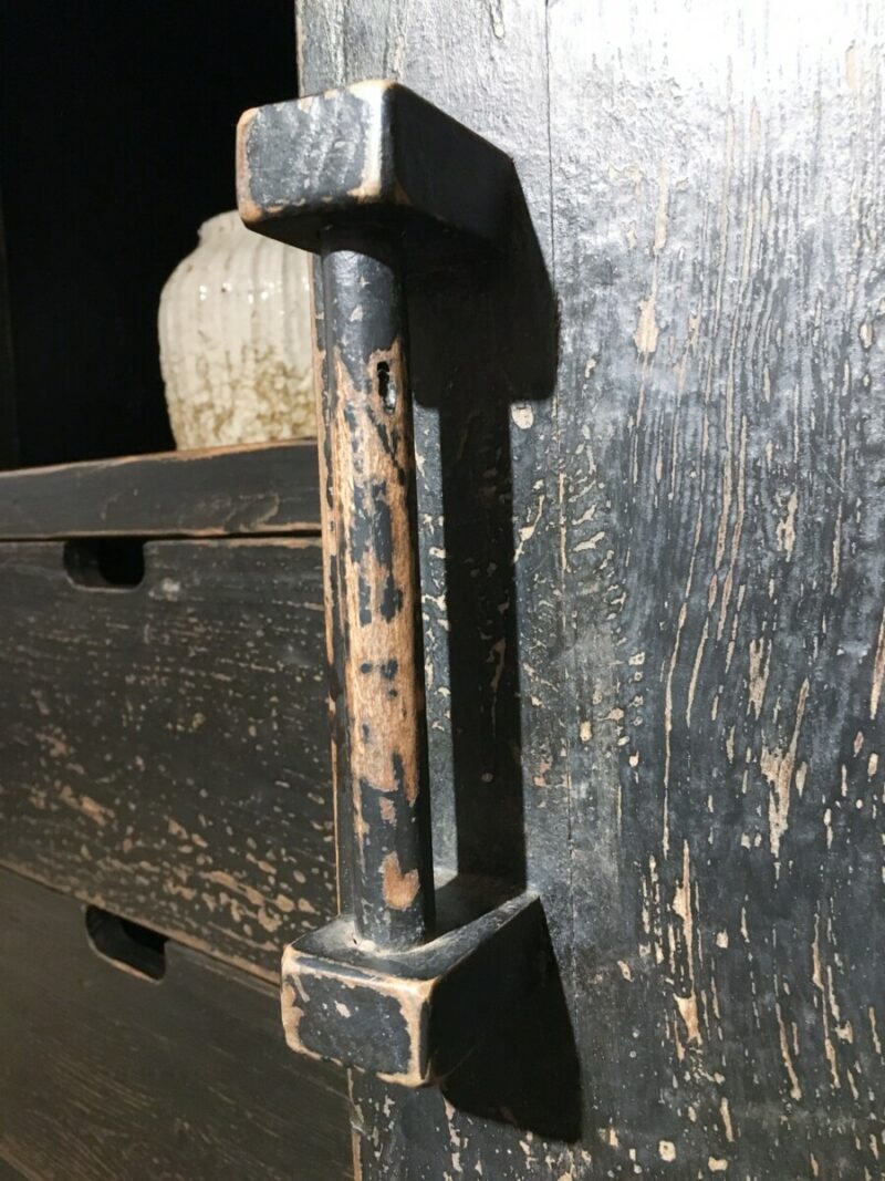 Cabinet Block CLASSIC Black is made of solid elm wood with a beautiful grain structure and black patina. The cabinet has two flanking doors, within which four shelves, and in the middle a niche with a shelf, and six spacious drawers below.