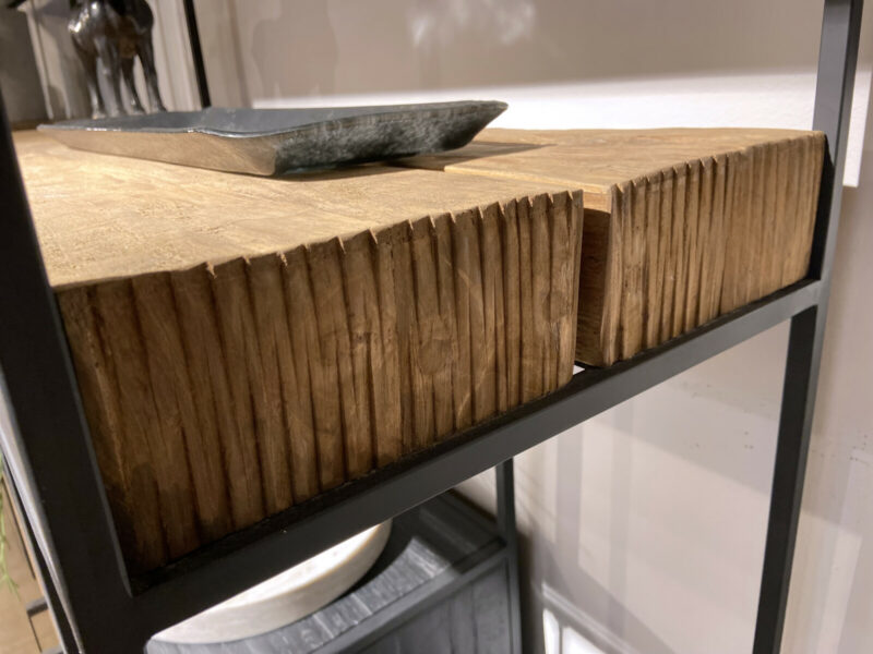 The Rack STORMM 120 x 210 with two doors is made of weathered recycled teak wood and a black steel frame with a playful surface division. In the middle a particularly thick leaf of 8 cm with a fine detail of traditionally chiseled ends. The combination of coarse and tough with slender and slender, and the alternation with natural wood and black has been brought together in a beautiful balance. If not in stock: 8 to 14 weeks delivery time.