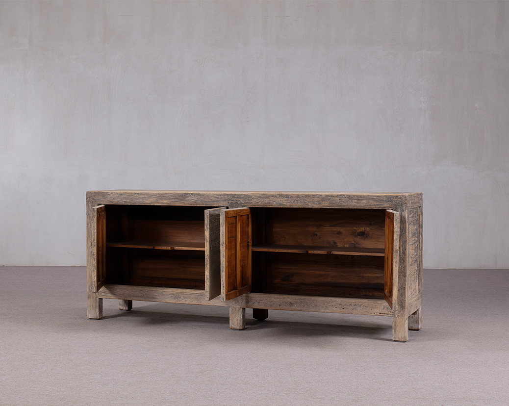 Vintage dressoir 4 deuren naturel.
