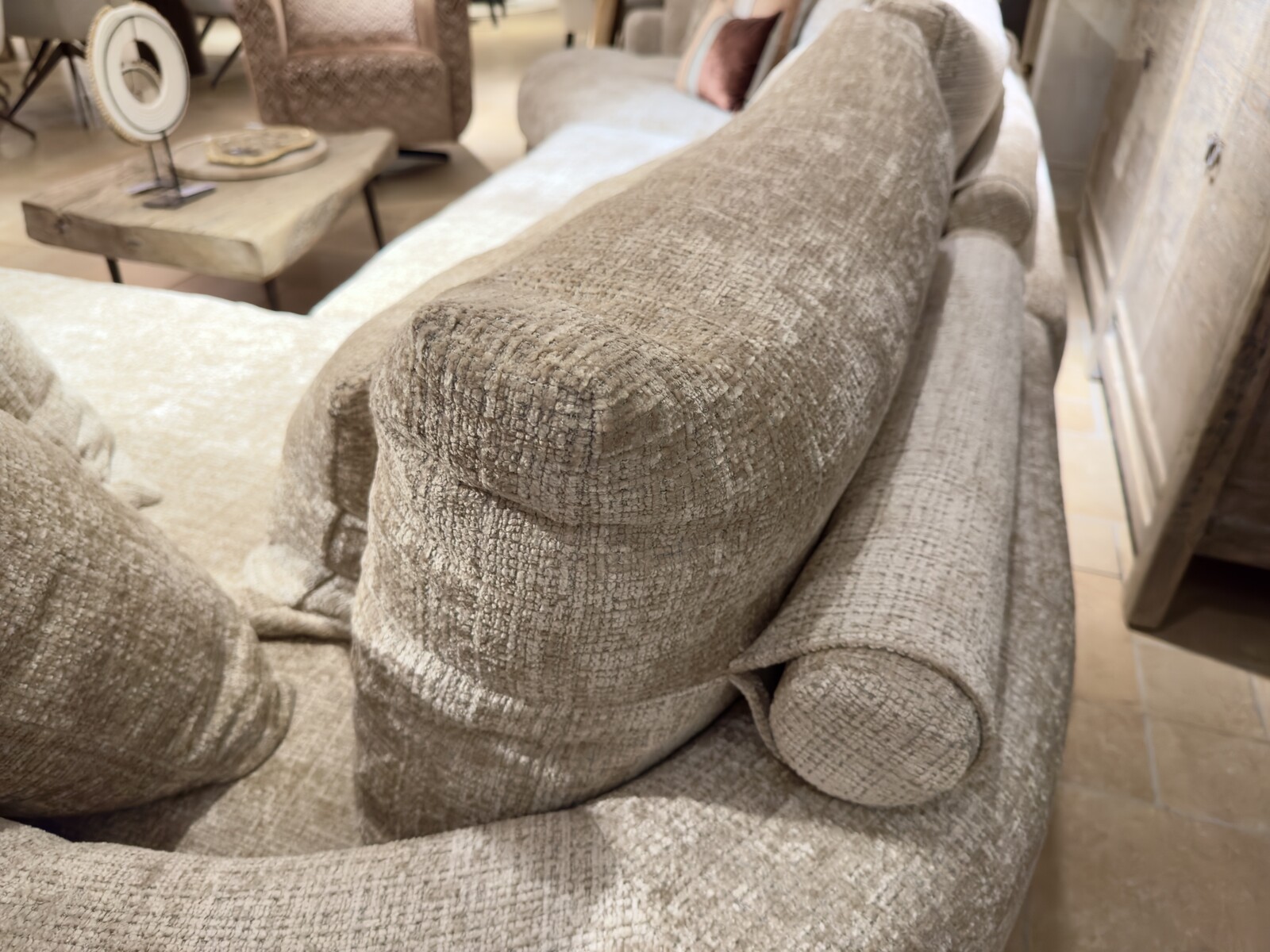 In de showroom uitgevoerd in Stof Cyclamen 14 Sand (stofgroep B) Poot zwart