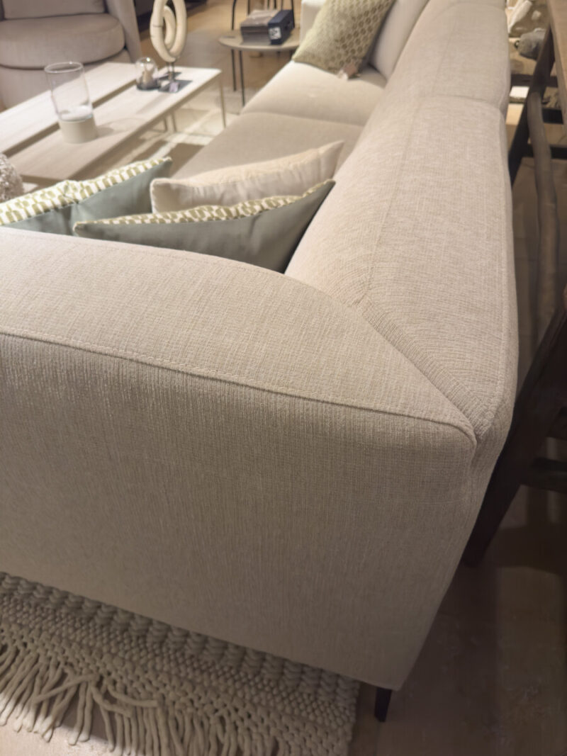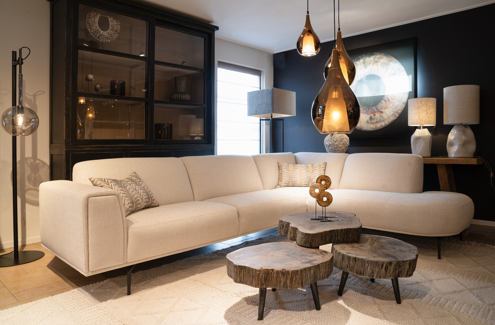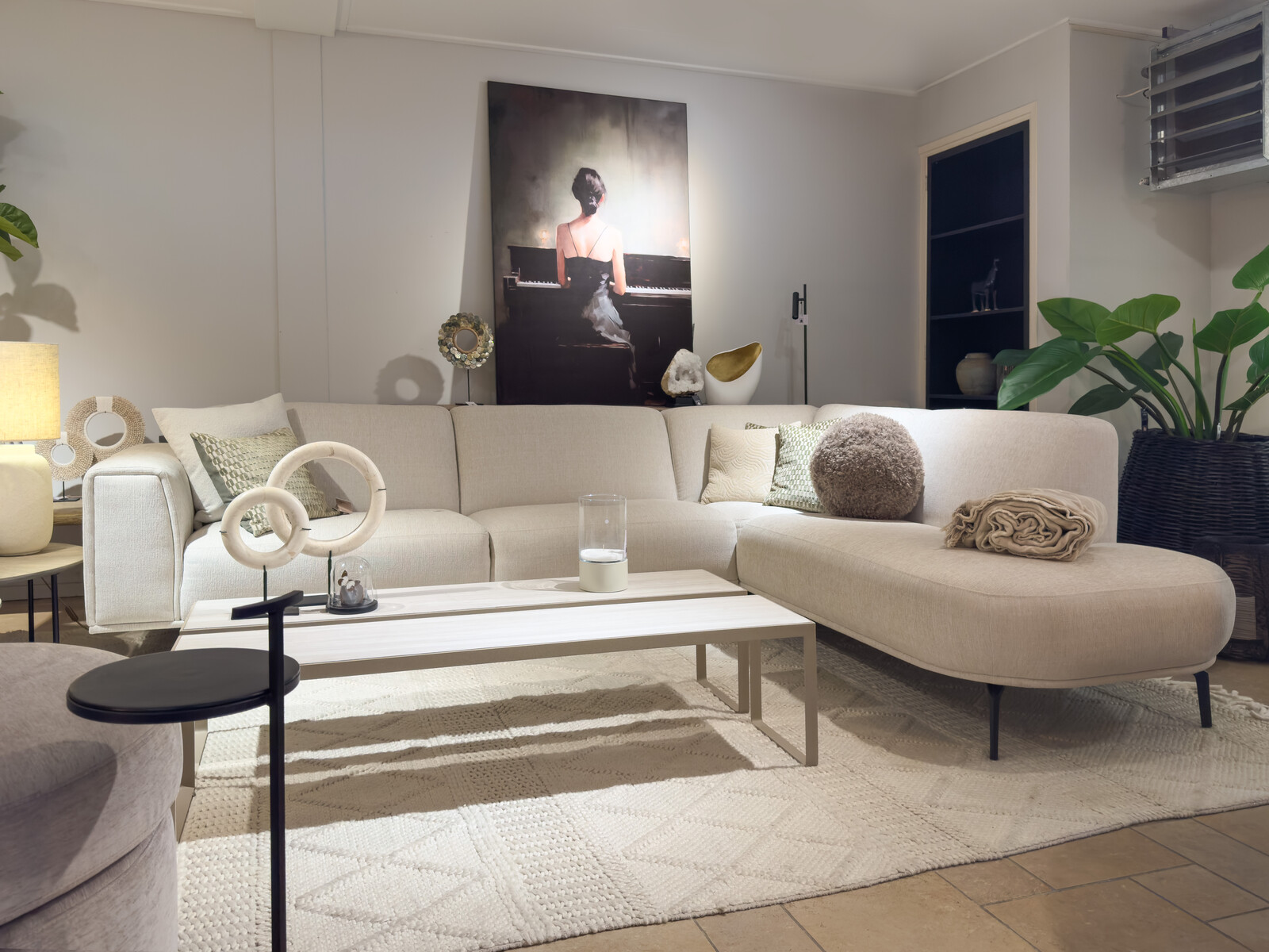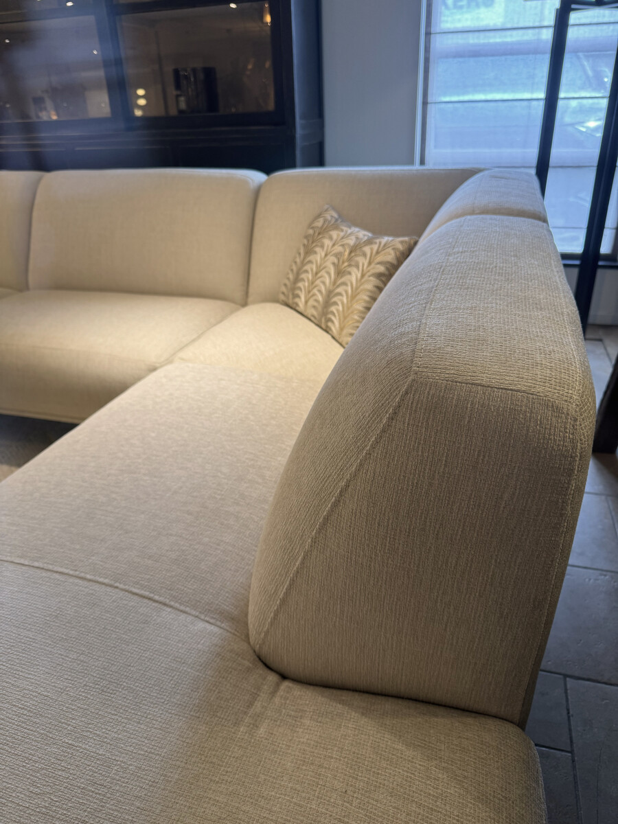 In de showroom uitgevoerd met de volgende elementen in stof Wish Linen 110 (stofgroep S2). Poot in zwart metaal.
