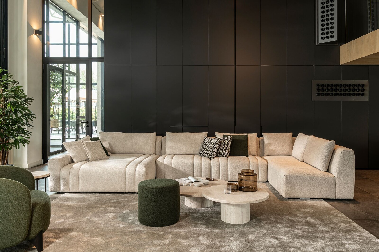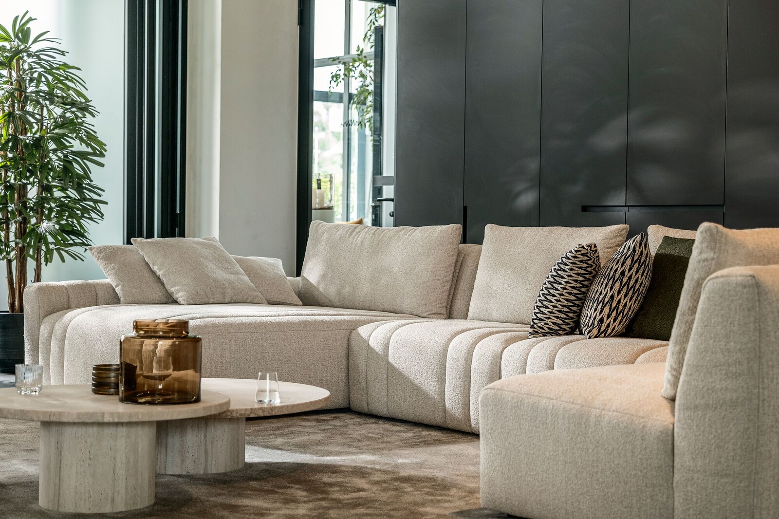 Bank Xavio van Passe Partout is een luxe loungebank waarbij gekozen kan worden uit vier uitvoeringen: A, B, C en D, met zitelementen die uit 1 stuk zijn opgebouwd of met los kussen. Ook kunt u kiezen voor een accent van mooie verticale doorgestikte naden in het zitkussen en de rug. In de showroom is de opstelling gecombineerd met de uitvoeringen A en D. Door het gebruik van memory foam in het zitkussen is dit een zeer comfortabele bank.