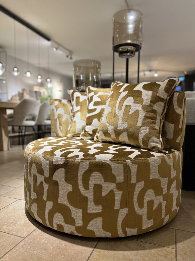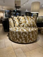 Fauteuil Kim van Bocx Interiors is een riante luxe ronde fauteuil met een zeer comfortabele zit, en is leverbaar in talloze stoffen met verschillende texturen en kleurstellingen.