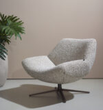 Fauteuil Lima heeft een fijne uitstraling met strakke lijnen en subtiele rondingen en past vrijwel bij alle moderne woonstijlen. Dankzij de ergonomische vormgeving biedt de Lima een zitcomfort dat uitnodigt tot ontspanning. De stevige metalen draaivoet zorgt voor moeiteloze beweging, waardoor het een perfecte aanvulling is op elke moderne woonruimte of kantoor. Combineer hem met een bijpassende hocker voor nog meer luxe. Perfect om in te lezen, relaxen of gewoon even tot rust te komen. Deze eigentijdse fauteuil is met passie handgemaakt in Brabant en staat bekend om zijn hoge afwerkingsniveau.