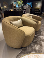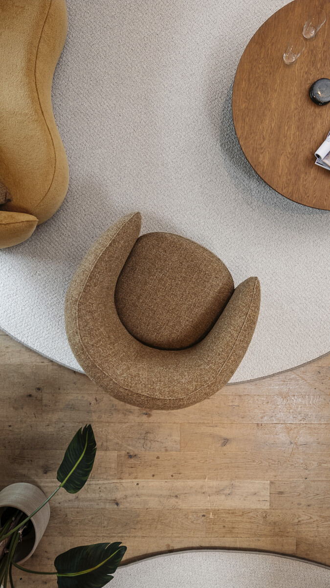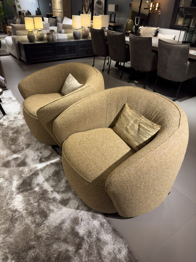 De fauteuil heeft een omarmende vorm welke heerlijk is om in te kruipen en je te laten omarmen door warmte en gezelligheid. Een geweldige blikvanger in elk interieur.