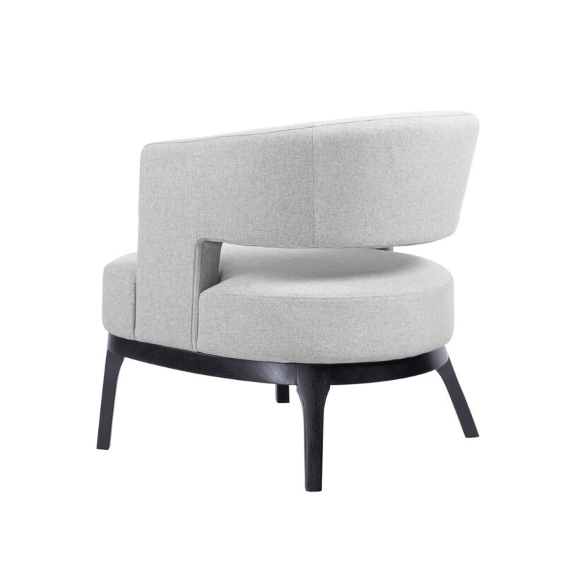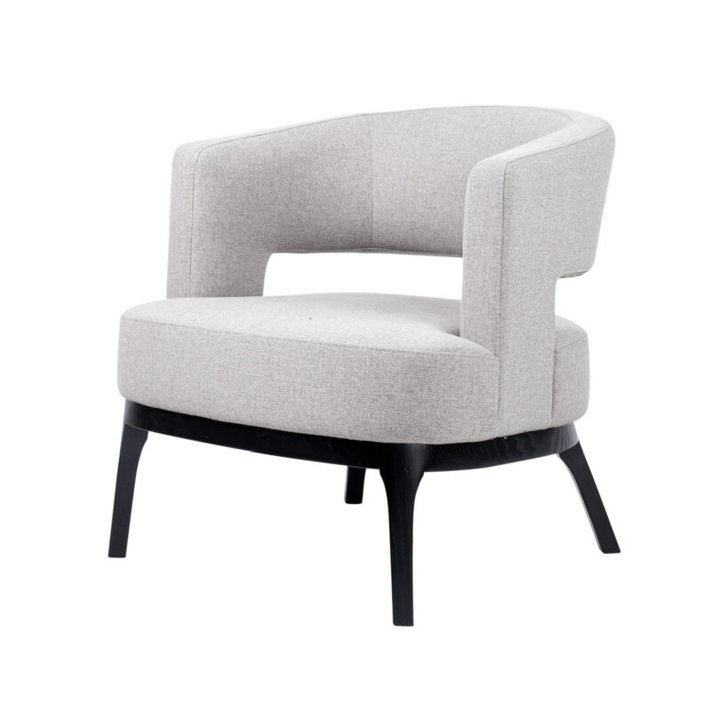 Fauteuil Otis heeft een comfortabele zit met een stijlvolle en ook comfortabele rugleuning, staand op een modern-klassiek massief houten onderstel.