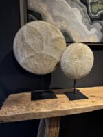 De prachtige luxe ronde woondecoratie op standaard ‘Batu’ van Hidden Pieces, is handgemaakt van kralen op Bali. Een sierraad voor je interieur. Verkrijgbaar in 2 maten.