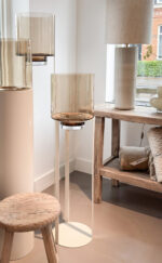 H 147 x Ø 27.5 cm Hurricane FLOOR Stand OPEN XL – MIvory & Topaz Glass – Artikelnr: 190-311-450 à € 229,45