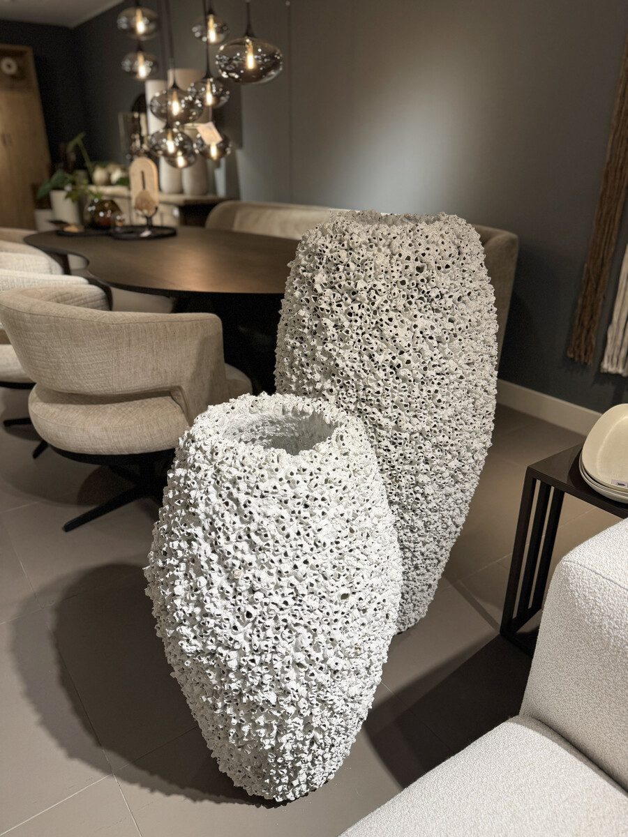 Handgemaakte pot van schelpen. Omdat deze potten met de hand worden gemaakt, is elk exemplaar uniek.