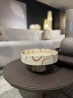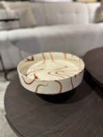 Serving bowl van gemarmerd keramiek in zacht gebroken wit en natuurlijk roodbruin, elke schaal is uniek.