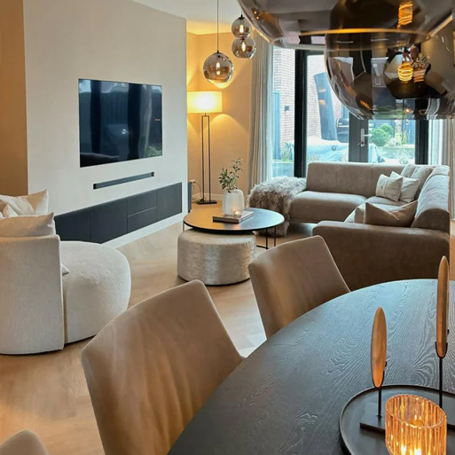 Aan de hand van de stijl, materialen en indeling gaan we samen met je aan de slag om een passende oplossing te zoeken: een indelingsplan met meubels, verlichting, en accessoires, in de materialen en kleuren die je graag ziet.