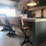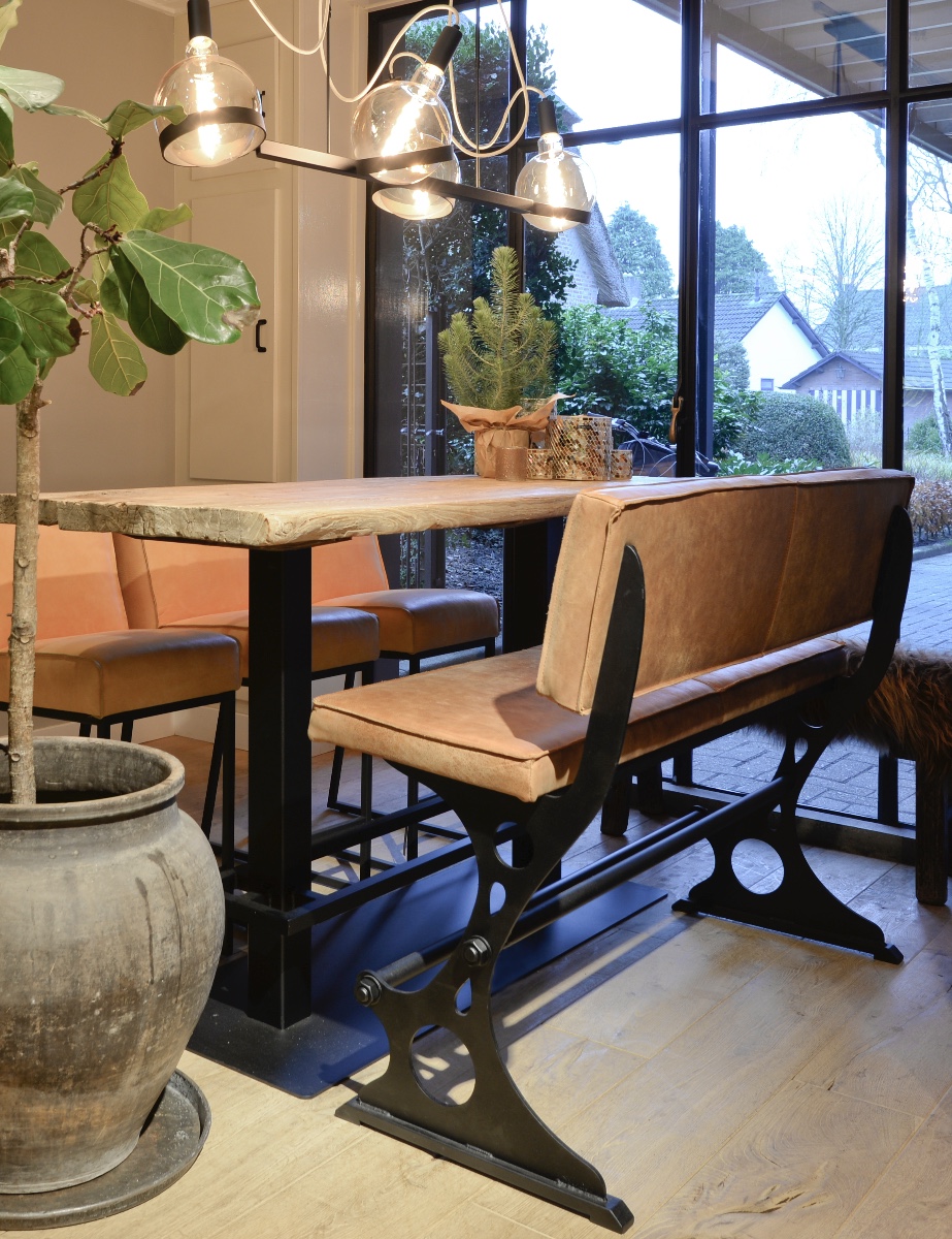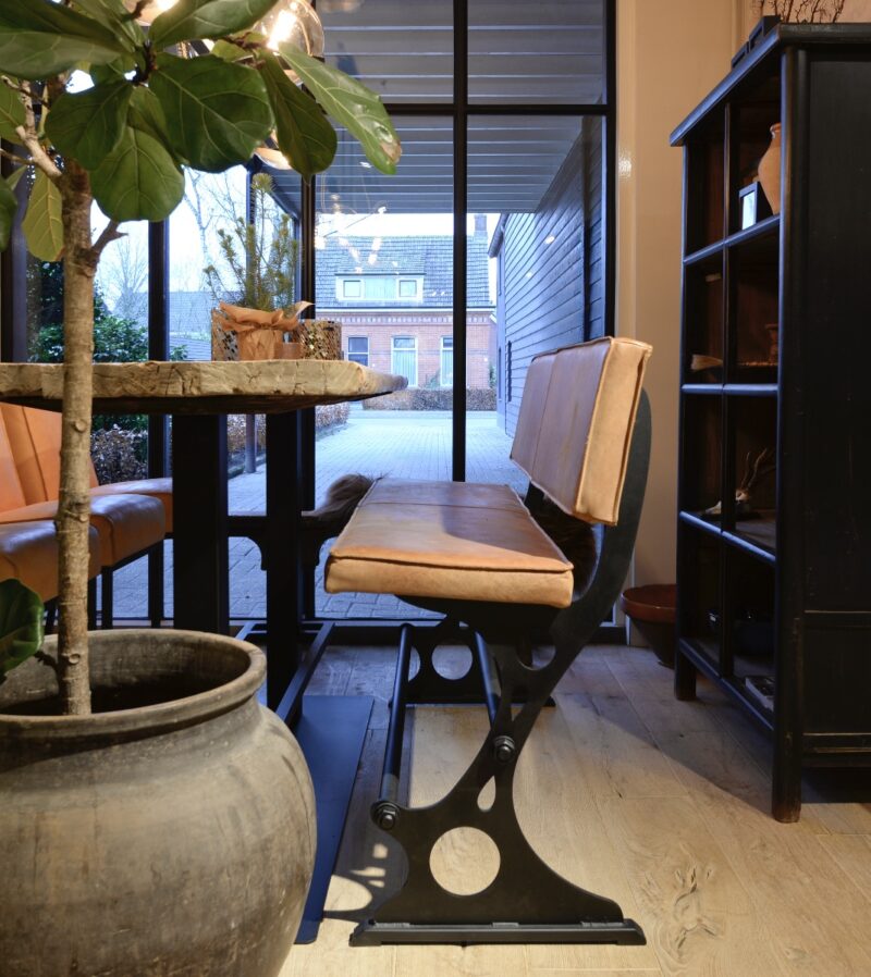 Bar Bank ‘Station’ van OddCollection, is een hoge bar bank op een ijzeren onderstel, die doet denken aan de sfeervolle karakteristieke stations uit de industriële revolutie. Verkrijgbaar met vlakke rug, in carré of streep gestikt of met knopen. In verschillende ledersoorten en stoffen en op uw gewenste maat leverbaar.