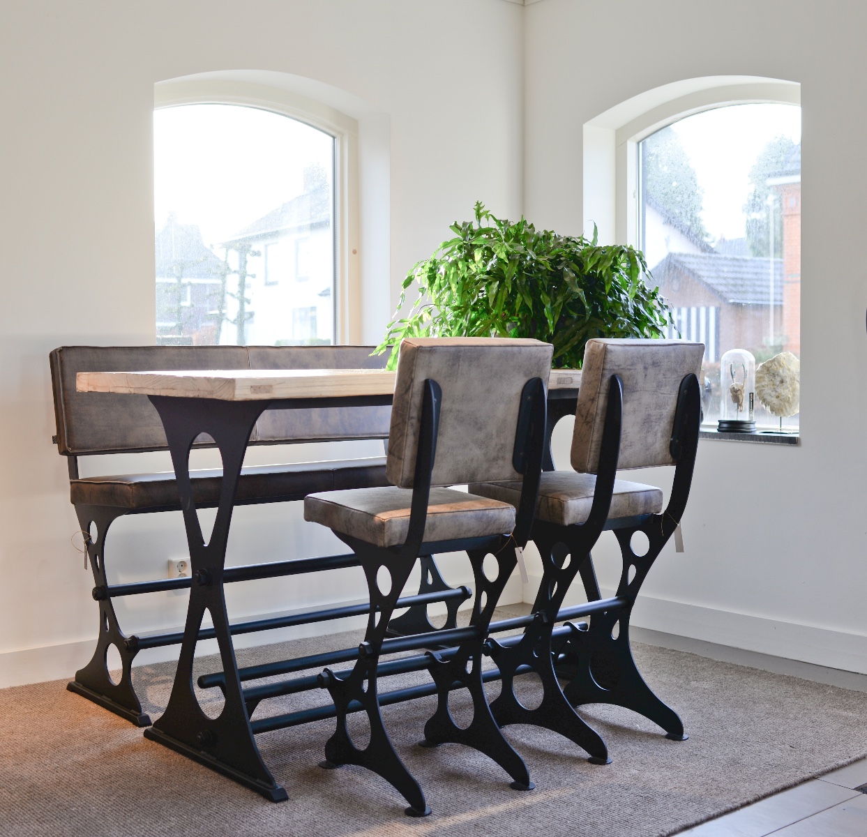 Barstoel ‘Station’ van OddCollection, is een hoge barstoel op een ijzeren onderstel, die doet denken aan de sfeervolle karakteristieke stations uit de industriële revolutie. In verschillende ledersoorten en stoffen en op uw gewenste maat leverbaar.