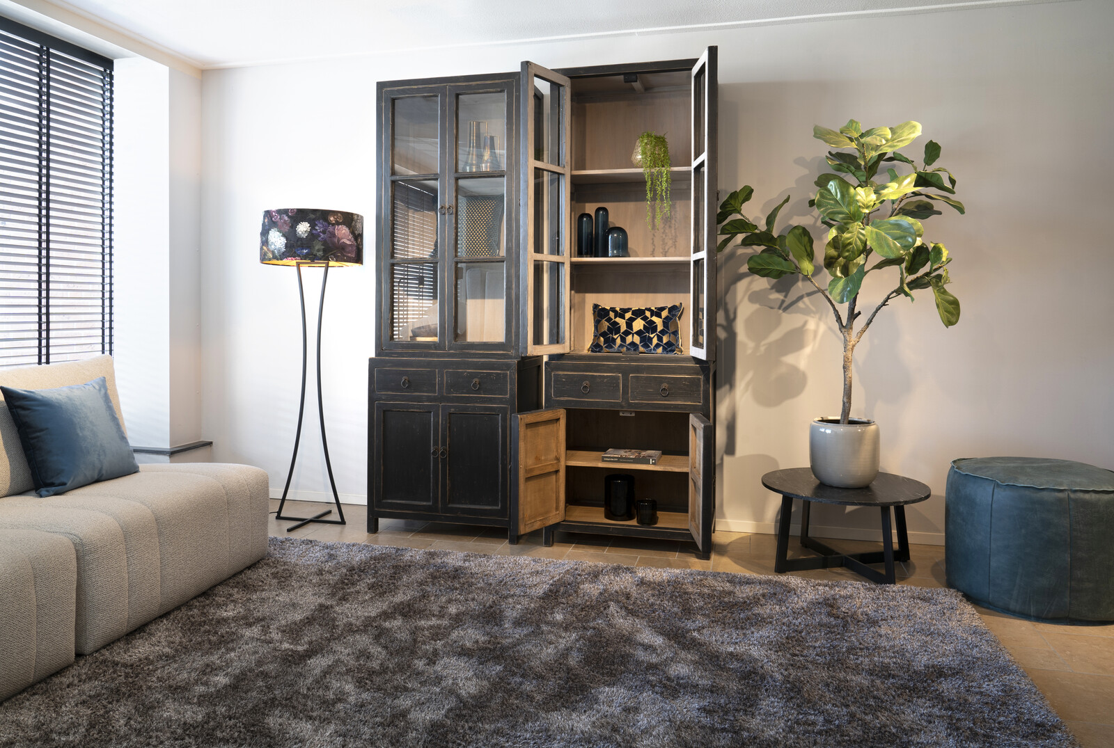 De vitrinekast is mooi te combineren in zowel een stoer, landelijk, strak, stijlvol en elegant interieur.