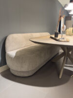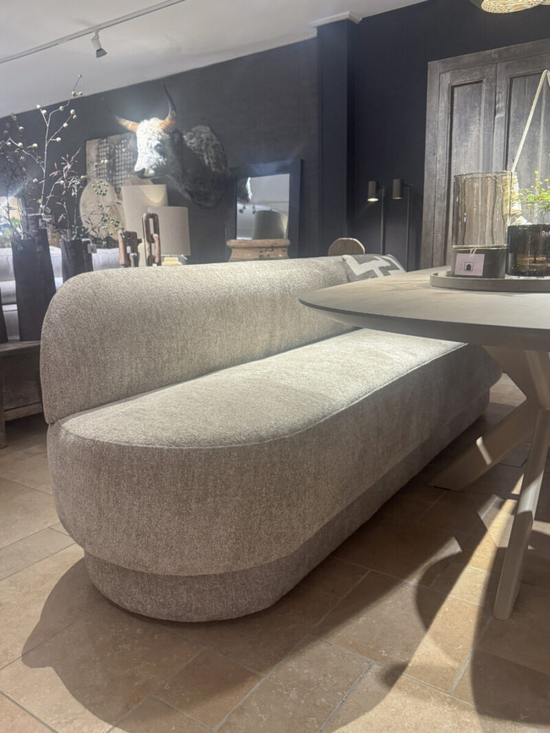 Barsofa Owen, een luxe eetkamersofa met mooie rondingen die niet al teveel plek in beslag neemt, en talloze keuzes mogelijk in bekleding om perfect te kunnen afstemmen op jouw interieur.