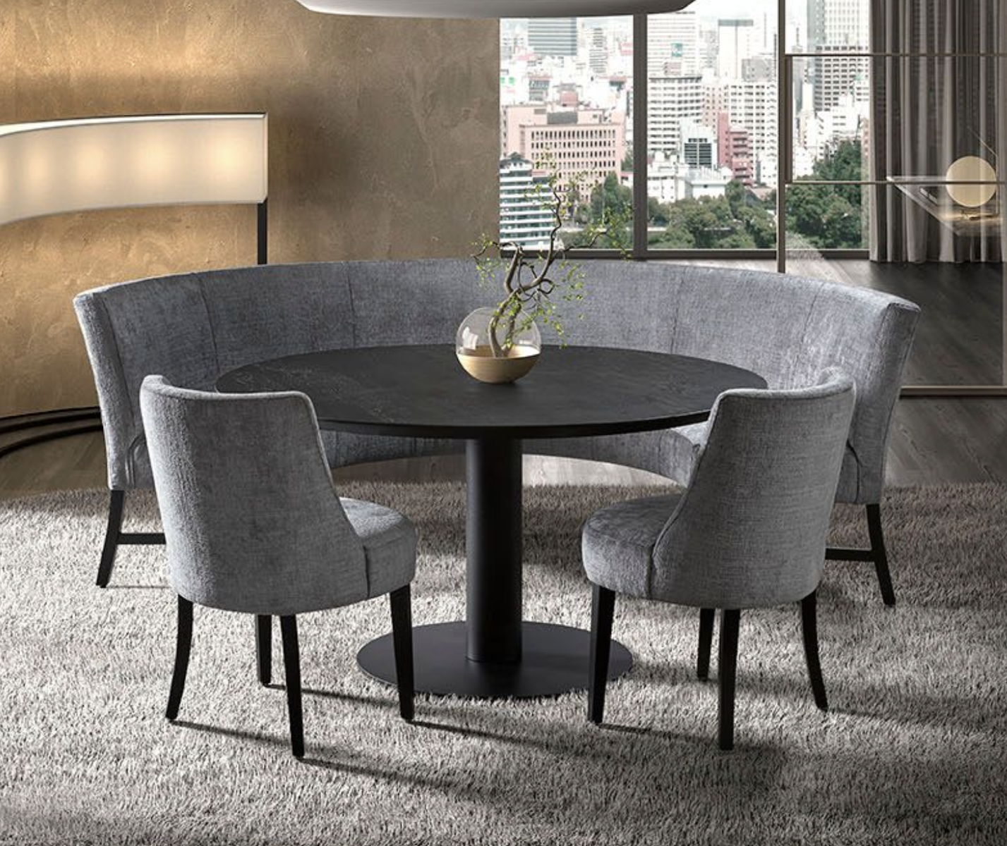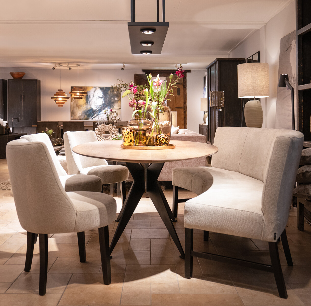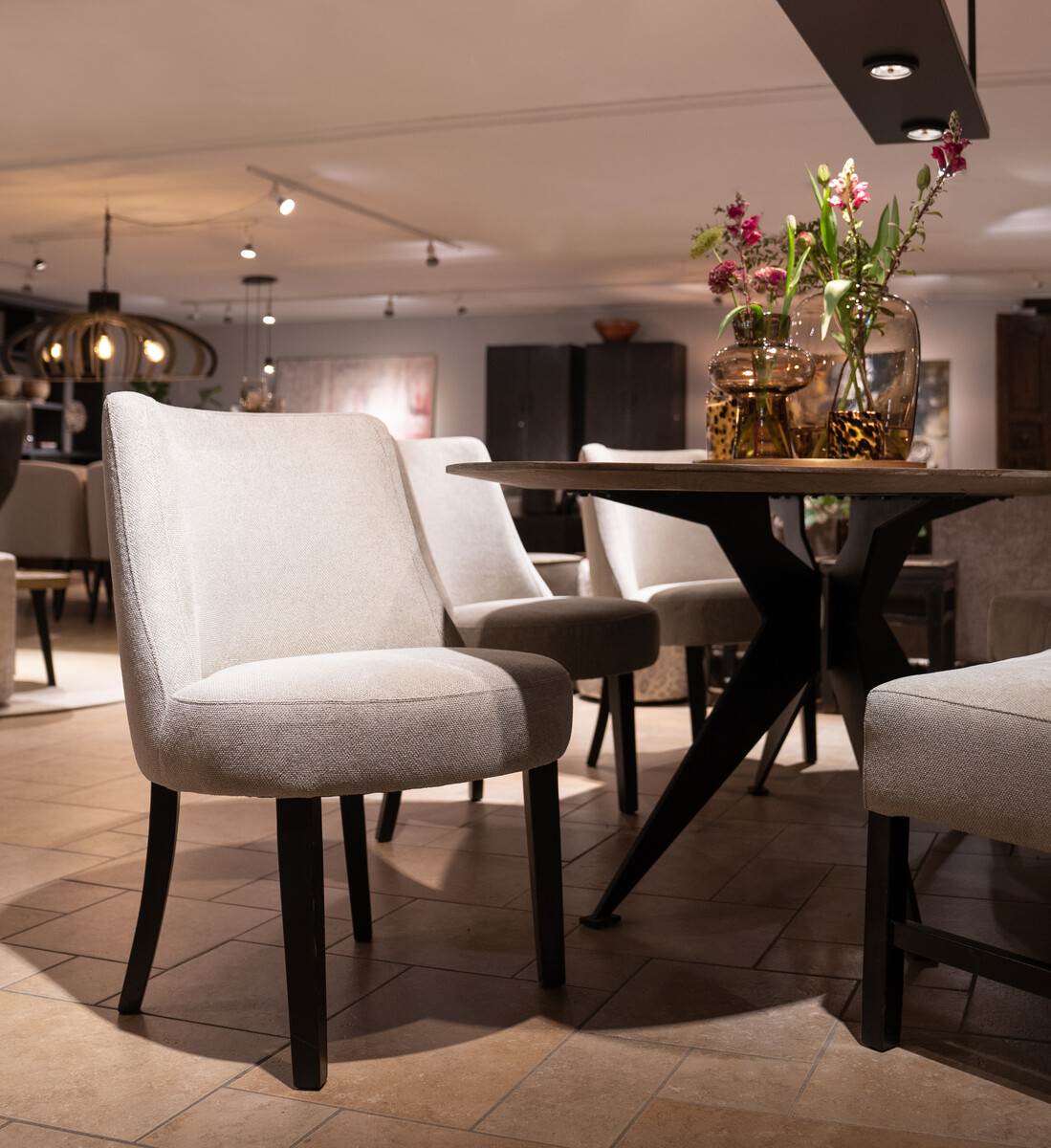 In de showroom uitgevoerd in stof Bolzano, kleur: Mud (stofgroef B).