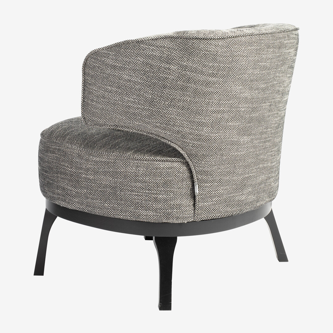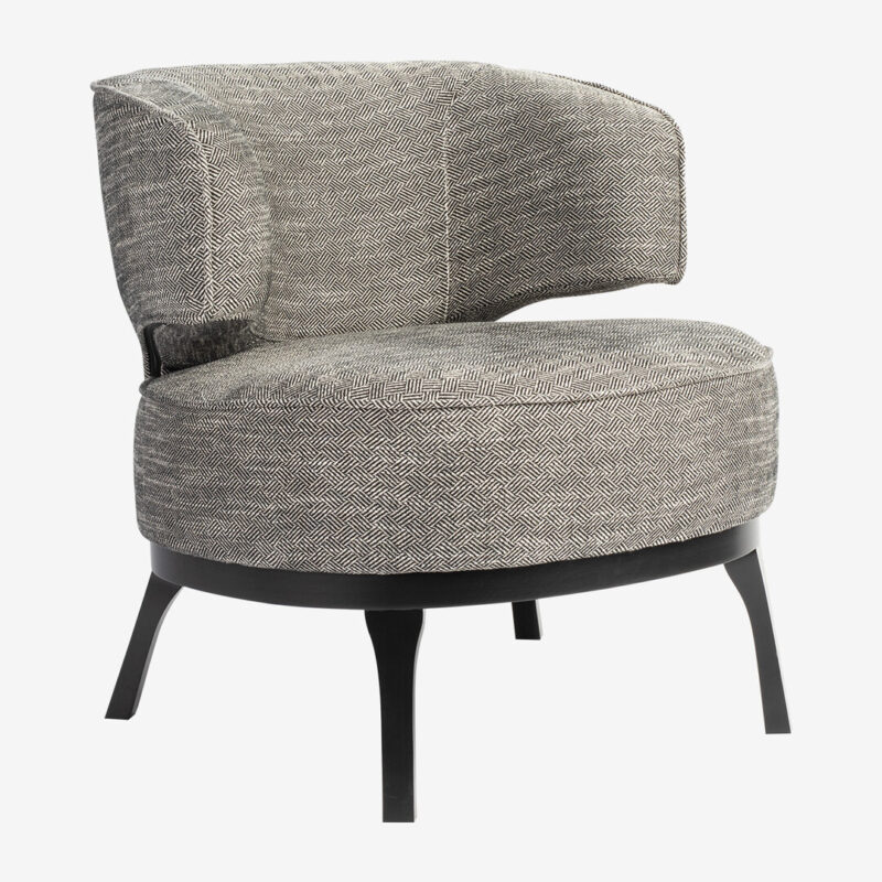 Mason is een fauteuil die je omhelst en een liefdevol gevoel biedt net als een echte knuffel. Deze fauteuil heeft een ronde zitting en een zwart beuken houten onderplaat met zwart metalen poten. Als extra detail kunnen de biezen in een andere kleur worden bekleed.