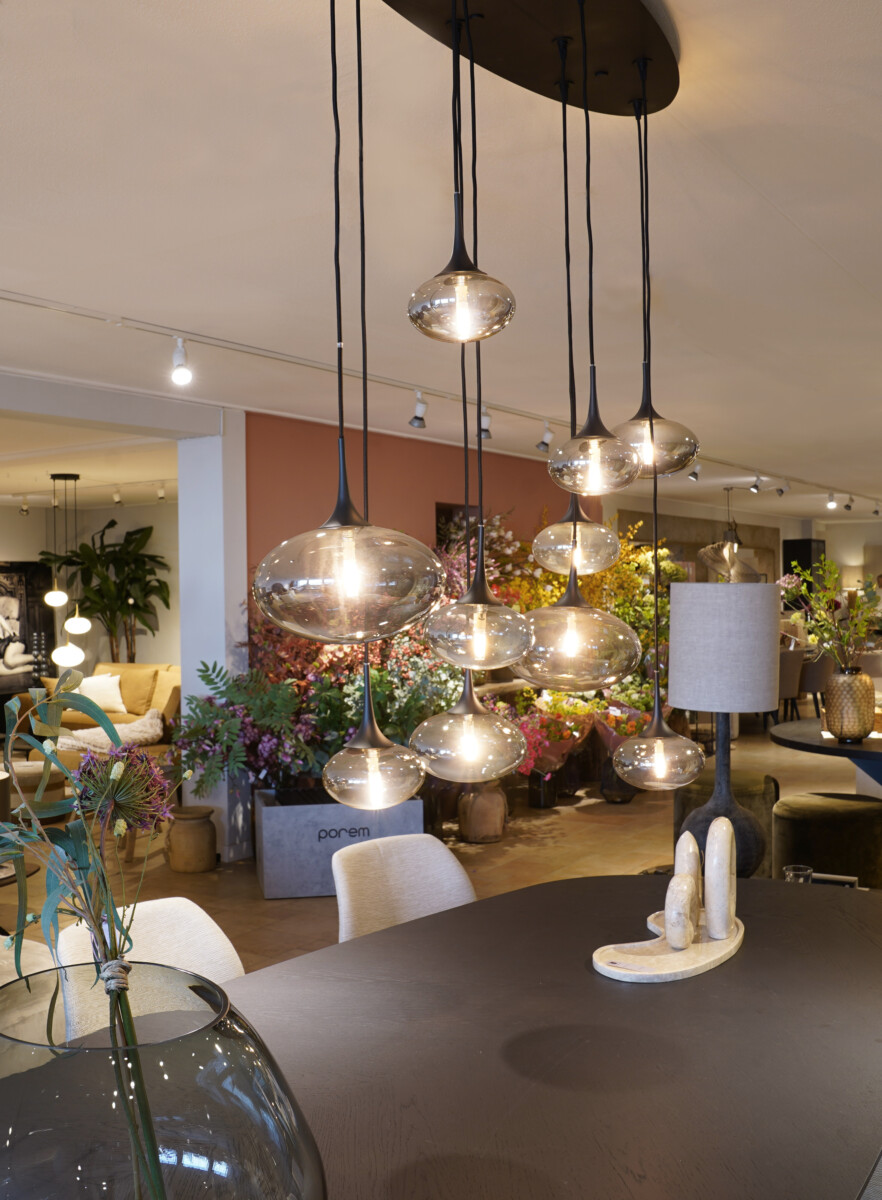 De Paradiso hanglamp met rookglas is als een ‘Symphony of Light’. De armaturen welke zijn afgewerkt met een elegante messing houder, kunnen zelf in hoogte worden versteld tot het gewenste effect. Elke bol, variërend in grootte van 150mm tot 250mm, straalt een helderheid uit met een maximum van 5W per bol.