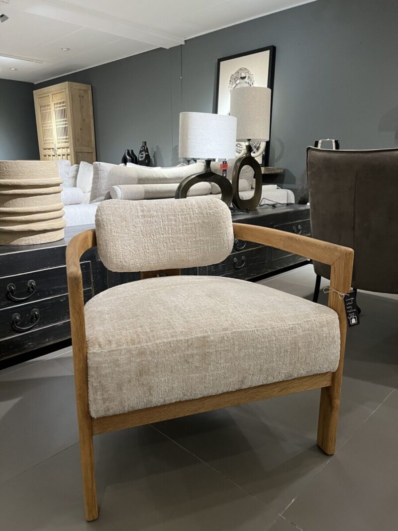 Kelly – Stof Luxor, kleur Sand – Frame Naturel (showroom)