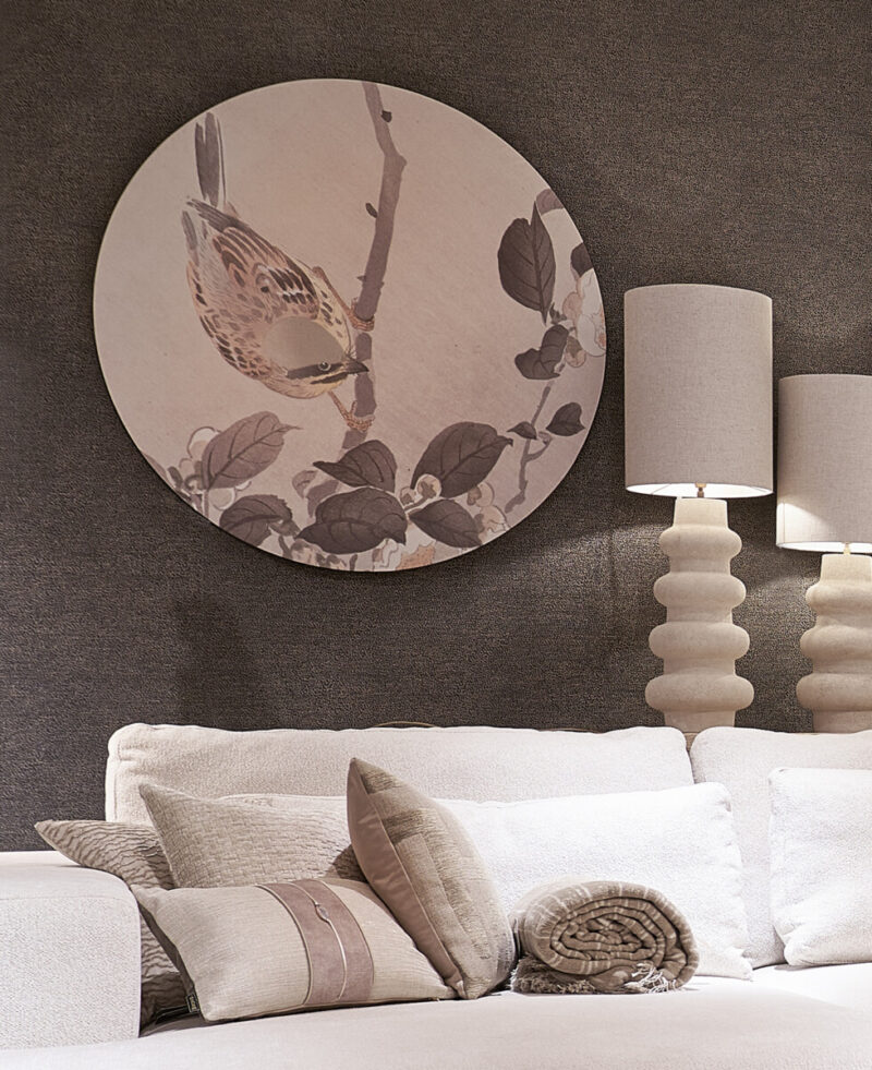 Reproductie van kunstwerk “Gors On Flower Branch” van de Japanse kunstenaar Ohara Koson.