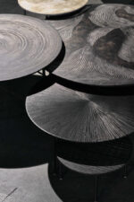 Salontafels Multimoon in kleur Grey met handgemaakte gravures van Mos Design. Made in Italy.