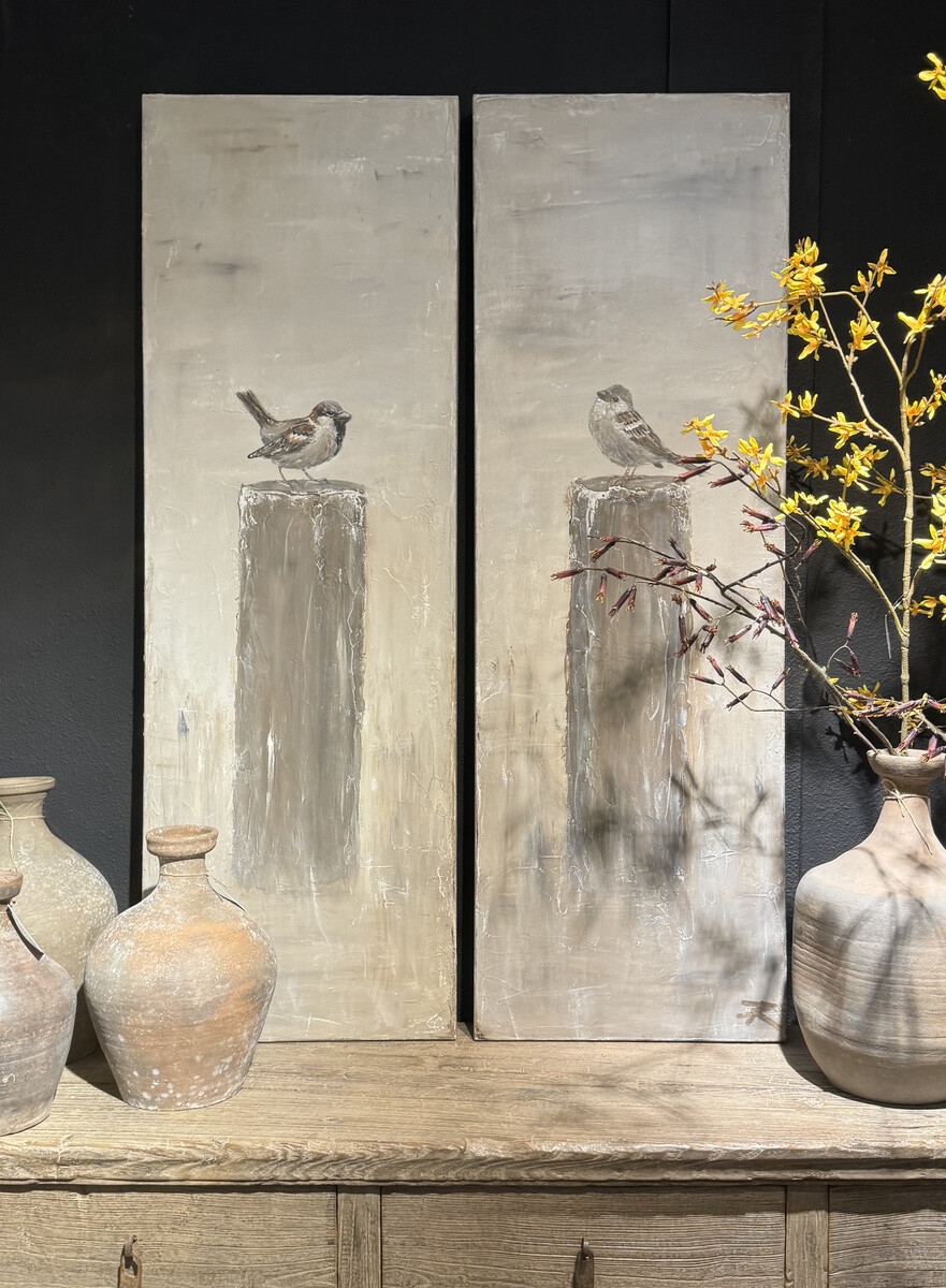 Set Schilderijen Vogels op paaltjes