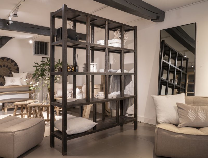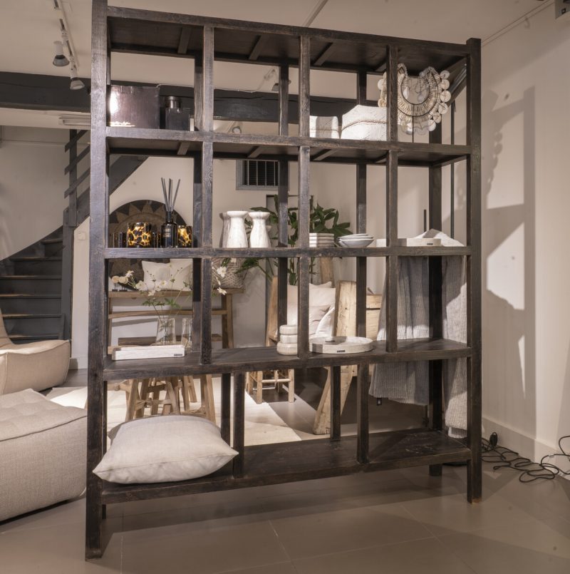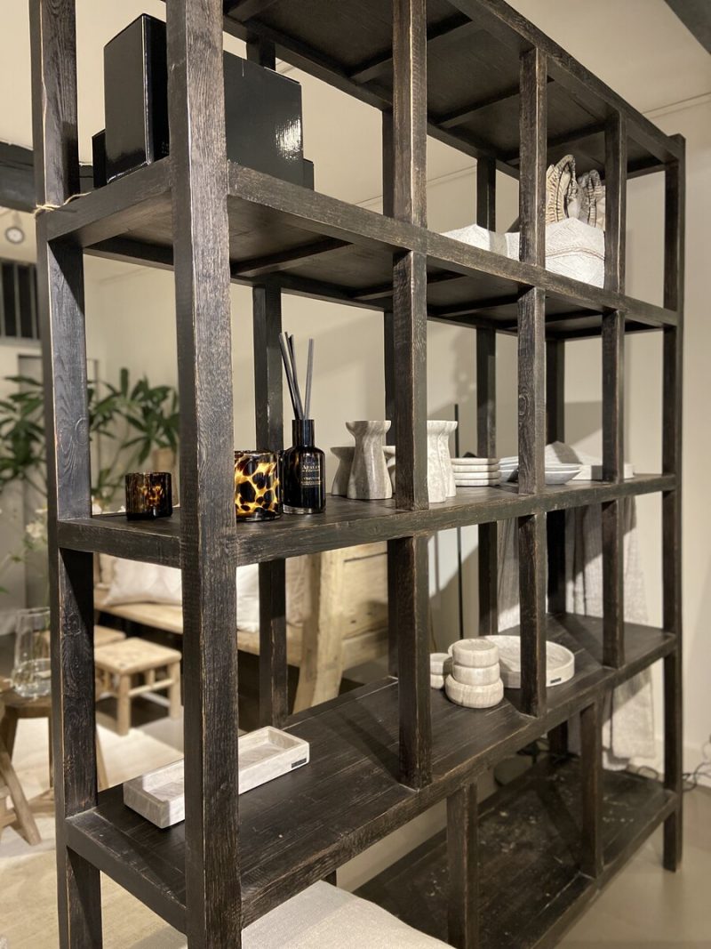 Stellingkast gemaakt van elmwood met donker verweerde lak waarin de nerfstructuren mooi uitkomen. Op bestelling, 18 weken levertijd.