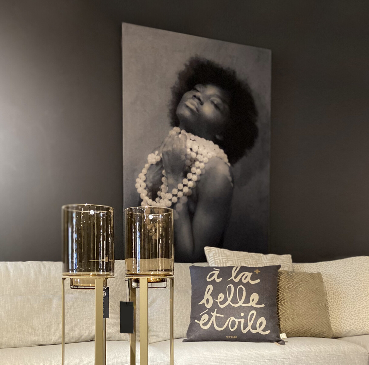 Geprint op velvet in metal frame omkleed met croco leder
